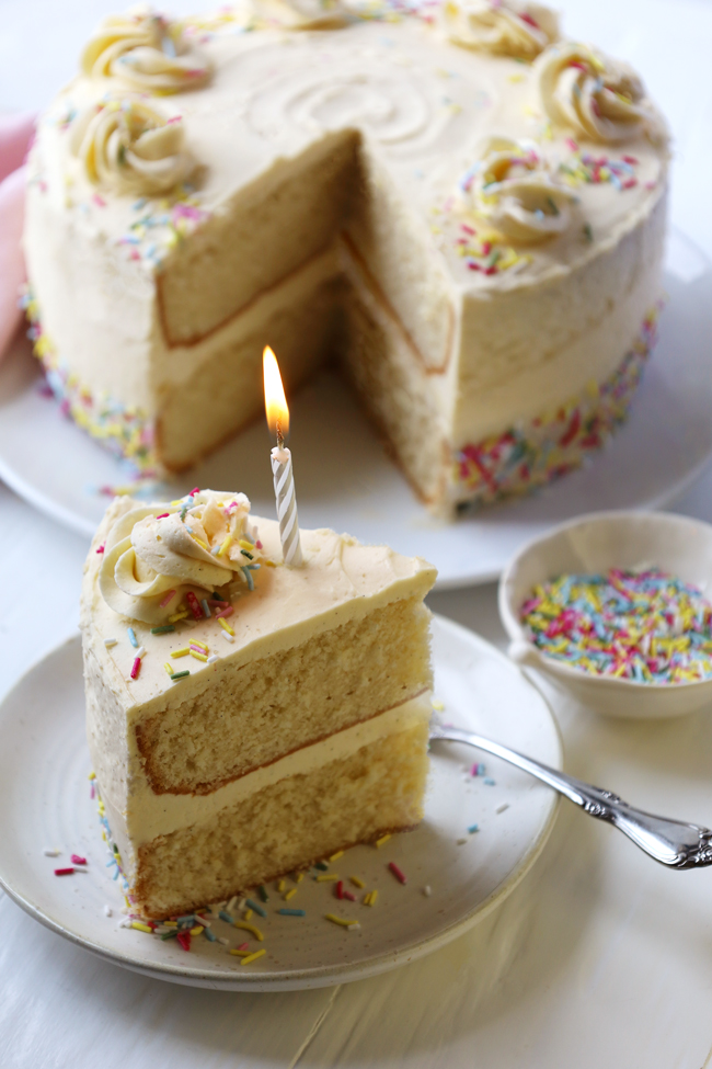 A rich, elegant vanilla cake with a tender crumb and luxurious whipped buttercream — perfect for birthdays and special occasions. The ultimate birthday cake!