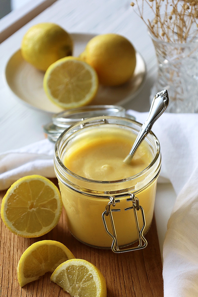 3 large eggs 120 g (1/2 cup ) lfreshly squeezed emon juice (about 3-4 lemons) 65 g (1/3 cup) caster sugar zest pf 3 unwaxed lemons 85 g (6 tbsp) unsalted butter pinch of salt ½ tsp vanilla bean paste