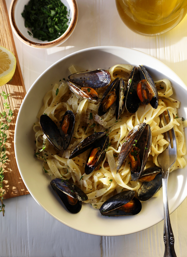 Mussels that are gently steamed with white wine, thyme, and garlic, then swirled into a silky cream sauce that clings to ribbons of tagliatelle. Elegant yet effortless, this dish is ready in just 15 minutes , perfect for a weeknight easy meal!